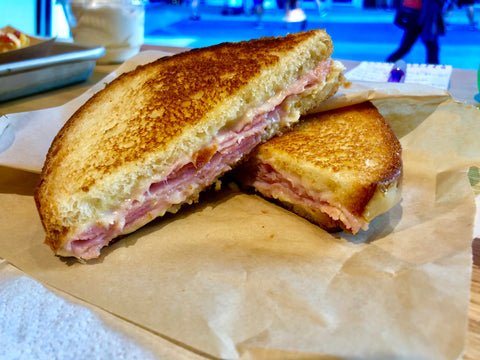 Essentially this is a grilled ham and cheese sandwich with spicy mustard. A very good sandwich, it was warm and gooey. I did share half with my husband so he could taste it as well.